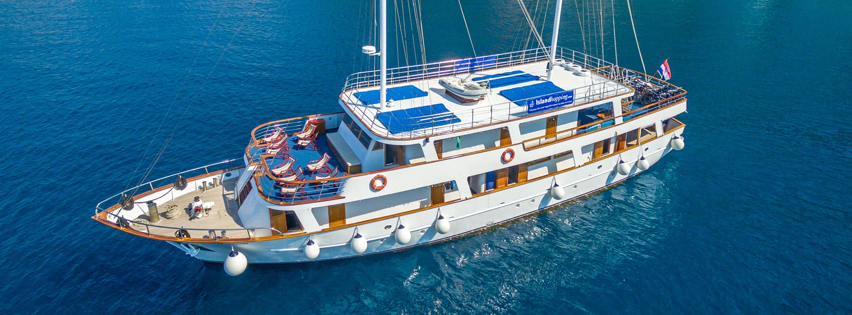 Die Einrichtung der geräumigen Kabinen ist zweckmäßig und hell. Die Badeplattform am Heck ermöglicht auf sehr bequeme Weise ein Bad in der Adria. Eine stets aufmerksame und freundliche Crew sowie ein gut ausgebildeter Koch garantieren Genuss und Entspannung an Bord auf höchstem Niveau.