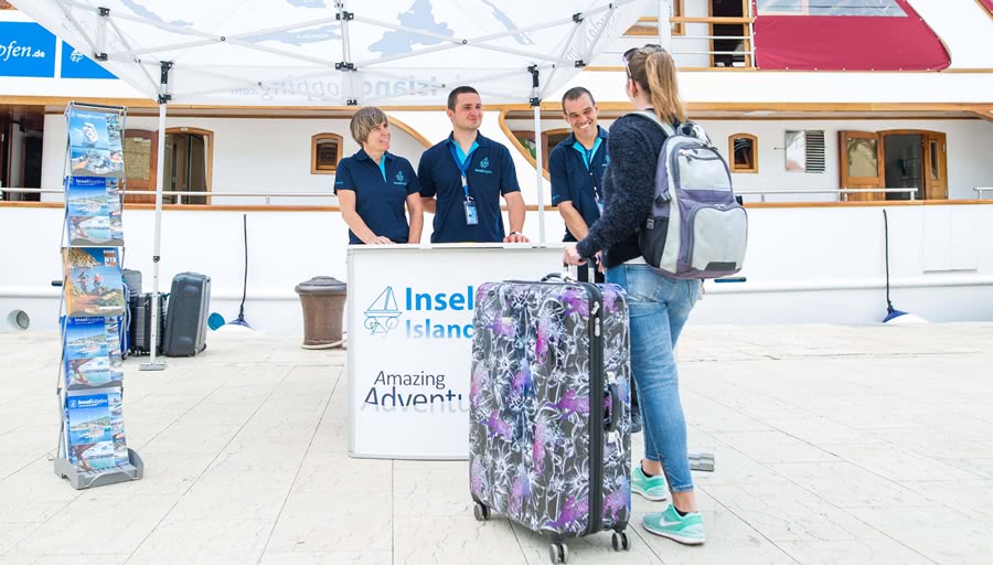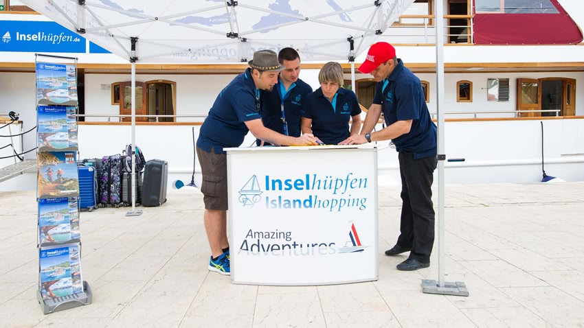 Über uns / Teamwork 15.09.2021 14:21 von Catharina Flämig Blick hinter die Inselhüpfen-Kulissen Vorhang auf – Ein spannender Blick hinter die Inselhüpfen-Kulissen Die kribbelige Vorfreude auf den wohlverdienten Urlaub kennt jeder. Das Herbeisehnen dieser kostbaren Zeit, nachdem die Entscheidung für ein Reiseland gefallen ist, gehört zum Urlaubserlebnis fest dazu. Irgendwann heißt es endlich Kofferpacken und das Abenteuer kann beginnen. Erfahrene Inselhüpfer wissen genau, worauf sie sich freuen dürfen. Alles fängt mit dem Moment an, wenn Sie zu Beginn Ihrer Reise im Hafen ankommen, Ihr Schiff dort vor Anker sehen und in die strahlenden Gesichter unserer Reiseleiter blicken, die Sie herzlich willkommen heißen. Es folgt eine Woche voller Sonne und frischer Seeluft, mit viel Bewegung und mindestens ebenso viel Genuss, das Meer kaum einen Wimpernschlag entfernt. Reisen auf einem charmanten Schiff, das als schwimmendes Zuhause von Insel zu Insel schippert. Radeln in Begleitung kompetenter Guides, die mit viel Charme, Wissen und Witz Radtouren leiten, die bis in die entlegensten Winkel jeder Insel führen. Nach einer tollen Tour kommen Sie zurück zum Schiff, genießen bei einem Sprung ins Meer die verdiente Abkühlung und lassen sich schließlich mit einem leckeren Essen an Bord verwöhnen. Wie sollte man sich darauf nicht freuen? Doch zurück zum Anfang! Tatsächlich ist der Weg von Ihrem Reisetraum bis zur Traumreise ein weiter: Nicht nur für Sie, sondern auch für uns, denn hinter den Inselhüpfen-Kulissen laufen unglaublich viele Vorbereitungen ab, bevor eine Tour tatsächlich beginnen kann. Blicken Sie mit uns einmal hinter die Inselhüpfen-Kulissen! Wohin soll die Reise gehen? Von der Ausarbeitung einer Tour bis zu Ihrer Buchung Viele unserer Reisen haben wir schon lange im Programm, aber wir sind auch ständig auf der Suche nach neuen Urlaubserlebnissen. Unser Team erkundet fortlaufend neue Gegenden und hält nach geeigneten Schiffen Ausschau, mit denen sich Reisen à la Inselhüpfen verwirklichen lassen. Alles wird sorgfältig dokumentiert und anschließend auf unserer Webseite, unseren Social Media Kanälen und in unserem Reisekatalog anschaulich dargestellt. Und dann kommen Sie ins Spiel: Nachdem Sie unser Angebot durchstöbert und sich für Ihre Lieblingsdestination entschieden haben, buchen Sie die von Ihnen favorisierte Tour. Hierbei steht Ihnen unser kompetentes Team in der Buchungsabteilung in Konstanz jederzeit beratend zur Seite, denn schließlich gilt es, eine ganze Bandbreite von Entscheidungen zu fällen: Möchten Sie mit Trekkingrad, E-Bike, Mountainbike oder Rennrad unterwegs sein? In einer Kabine über Deck oder unter Deck untergebracht werden? Wann ist die beste Reisezeit? Wie kommen Sie am günstigsten zum Ausgangspunkt der Reise? Unser Team kann Ihnen nicht bei jeder Entscheidung helfen, aber doch bei den meisten. Alle Ihre Fragen beantworten wir gerne, um Ihren Vorstellungen und Wünschen gerecht zu werden! Bestens informiert in den Urlaub – Ihre Reiseunterlagen Ist Ihre Reise gebucht und die Vorfreude auf den Urlaub jeden Tag größer, tauchen plötzlich ganz neue Fragen auf: Was sollen Sie einpacken? Welche Einreiseformalitäten gelten? Wann und wo können Sie an Bord Ihres Schiffes einchecken? Wie sieht das Bordleben aus? Was gibt es bei Mieträdern und sonstiger Ausrüstung zu beachten? All diese und viele weitere Fragen werden in unseren Reiseunterlagen beantwortet, die Sie vor Ihrer Reise je nach Wunsch postalisch in ausgedruckter Form oder digital per Email erhalten. Inspiriert von immer wiederkehrenden Fragen unserer Gäste werden diese Unterlagen in stundenlanger Detailarbeit jedes Jahr für Sie erarbeitet und fortwährend aktualisiert. Neben grundsätzlichen Informationen zum Reiseland finden Sie in den ansprechend gestalteten Mappen eine genaue Beschreibung Ihres Schiffes, Ihrer Mieträder sowie alles zum Reiseverlauf und viele weitere interessante Fakten rund um die von Ihnen gebuchte Tour. Echte Teamarbeit – Unsere Logistik vor Ort Auch in unseren Reisedestinationen selbst ist viel Organisation und Logistik nötig, bevor unsere Schiffe mit Ihnen in See stechen können. Unsere Logistikmitarbeiter legen besonderes Augenmerk auf die reibungslose Durchführung der von Ihnen gebuchten Transfers sowie auf den makellosen Zustand unserer Mietradflotte. Diese ist in mehreren Fahrradlagern in Kroatien, Griechenland, der Türkei und Deutschland untergebracht. Insgesamt gilt es, viele hundert Mieträder unterschiedlicher Typen zu verwalten und dafür zu sorgen, dass diese in einwandfreiem technischem Zustand zur richtigen Zeit am richtigen Ort sind. Dafür legen unsere Räder teilweise einen weiten Weg zurück: Zusammen mit den ebenfalls benötigten zahllosen Ersatzteilen, Werkzeugen und weiterem Equipment wie Satteltaschen, Erste Hilfe Bedarf, Bordbibliotheken u. v. m. werden sie in großen Vans durch halb Europa transportiert, um rechtzeitig auf dem richtigen Schiff zu sein, damit Ihr Radurlaub beginnen kann. Die regelmäßige Wartung und Reparatur unserer Trekkingräder, E-Bikes, Mountainbikes, Rennräder und Kinderräder ist einer der Garanten für Ihr besonderes Urlaubserlebnis. In allen Fahrradlagern erfolgt zum Saisonabschluss eine intensive Inventur, alle fehlenden Ersatzteile werden nachbestellt und die Lager zum Beginn der neuen Saison neu bestückt, damit wir auch in Zukunft mit Gewissheit sagen können: Ihr Mietrad ist in einem Top-Zustand und genau dort, wo Sie es fahren möchten! Unsere Mietradflotte aufgereiht im Fahrradlager Auch das Warten der Räder will gelernt sein Für jeden Gast das passende Rad In Vans werden unsere Räder an die jeweiligen Einsatzorte gebracht Welches Schiff? Welche Kabine? Jeder Koffer bekommt ein eigenes Label Ein Schiff wird kommen – Die Inselhüpfen-Flotte Unsere Schiffe sind auf den Inselhüpfen-Reisen Ihr schwimmendes Zuhause. Und damit es sich auch genauso anfühlt, werden alle Schiffe jeden Winter 