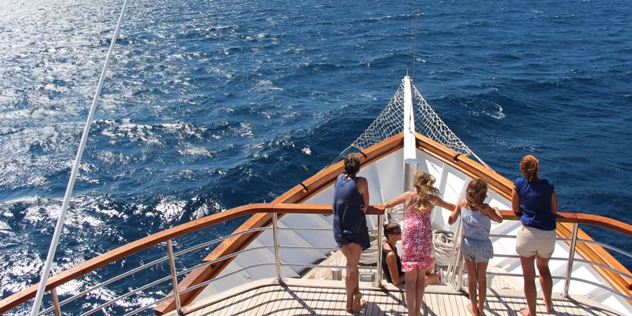 Inselhüpfen ist... 1. Aktivität, Entspannung und Genuss auf gleicher Welle Inselhüpfen ist ein ausgewogenes Gesamtpaket, welches Aktivität, Entspannung, Kultur und Genuss miteinander kombiniert und in das richtige “Wohlfühl-Verhältnis” bringt. Das richtige Maß an Aktivität Ob auf unseren Trekkingrad-, E-Bike-, Mountainbike- oder Rennrad-Reisen: jeder Gast soll auf seine Kosten kommen ohne sich dabei überfordert zu fühlen. Wir klassifizieren unsere Reisen nach verschiedenen Schwierigkeitslevels und sorgen während der Radtouren dafür, dass jeder sein eigenes Tempo fahren kann. Wer mag, kann anstelle einer Radetappe auch einfach mal an Bord bleiben und sich den Wind um die Nase wehen lassen. Genuss und grenzenlose Entspannung Der verdiente Lohn nach dem Aktivsein ist der Genuss: ein gutes Essen, ein schöner Ausblick, ein Bad im Meer, ein guter Espresso im Hafen, spielende Delfine vor dem fahrenden Schiff, das Brausen der Wellen am Bug – oder einfach die Augen schließen und sich von den Sonnenstrahlen wärmen lassen. Bei unseren Reisen wollen wir unseren Gästen immer genug Freiraum bieten, um sich voll und ganz zu entspannen. Oftmals gelingt dies am besten, wenn man zuvor aktiv gewesen ist. 2. Abenteuer mit Komfort Ihr schwimmendes Hotelzimmer reist einfach mit Wer gerne reist und dabei möglichst viele Orte sehen will, kennt den damit verbundenen Stress. Bei uns genießen Sie den Vorteil einer mitreisenden Unterkunft. So gelangen Sie ganz ohne lästiges Kofferpacken von Insel zu Insel. Nach einer anstrengenden Radtour wartet Ihr schwimmendes Zuhause schon im nächsten Hafen auf Sie. Nicht selten duftet bei Ankunft das frisch zubereitete Essen aus der Kombüse. Und wie wäre es mit einem Sprung ins blaue Nass? Frisch aus der Kombüse Das Abenteuer auf einem Schiff zu wohnen und in einsamen Buchten zu ankern verbinden wir mit dem Komfort sich um nichts kümmern zu müssen. Auf dem Schiff werden Sie von einer aufmerksamen Crew umsorgt. Das Küchenteam serviert Ihnen täglich frische, saisonale und lokale Köstlichkeiten. 3. Kultur erfahren, statt nur zu sehen Bei vielen Urlauben sind die besuchten Länder beliebig austauschbar. Aber jedes Land und seine Kultur ist einzigartig, und beim Inselhüpfen spielen die Kultur und Geschichte eines Landes eine besondere Rolle. Wir legen großen Wert auf eine sanfte, kompetente und persönliche Begegnung mit dem Alltag und der Natur, der Gegenwart und Geschichte des besuchten Landes. Uns ist es wichtig, dass Sie das Wesen, die Seele und besondere Atmosphäre Ihres Gastlandes erfahren und kennen lernen. Denn nur so werden Ihre Reiseerlebnisse wirklich nachhaltig sein. Begegnungen auf dem Wochenmarkt in Bodrum Kroatisch-Sprachkurs an Bord Traditionen erleben Kulinarische Besonderheiten probieren Herzliche Gastfreundschaft in Griechenland © Moritz Ablinger Stadtführung 4. Unbeschwert Reisen, dank Betreuung im Doppelpack Auf unseren Rad & Schiff Reisen werden Sie ab 16 Teilnehmern von zwei kompetenten Guides begleitet, die Sie sicher bis in die entlegensten Winkel aller Inseln führen und Ihnen dabei mit Charme und Witz viel Wissenswertes über Ihr Gastland und seine Bewohner erzählen. Vorteile von zwei Reiseleitern: Wir setzen auf doppelte Betreuung, um Ihre Sicherheit beim Radfahren und an Bord sowie die reibungslose Durchführung Ihrer Urlaubsreise zu garantieren. Selbst wenn ein Gast einmal eine intensivere Betreuung benötigt, kann Ihre Reise in Begleitung des zweiten Guides trotzdem wie geplant weitergehen. Reiseleiter beim Verladen der Räder Ein gutes Team Wartung der Räder Einweisung vor der ersten Tour 5. Freiheit! Nichts müssen, alles dürfen Auf unseren Aktivreisen bieten wir ein abwechslungsreiches Programm. Neben Radtouren stehen auch Stadtführungen, Vorträge, Wanderungen und kulinarische Erlebnisse auf dem Programm. Ob Sie daran teilnehmen oder nicht liegt ganz in Ihrer Hand. Jeden Morgen nach dem Frühstück bekommen Sie ein umfangreiches Briefing zu den geplanten Aktivitäten. Von Ihren Reiseleitern erfahren Sie auch die Streckenlängen und Anforderungen der bevorstehenden Radetappen. Entscheiden Sie anschließend selbst, wie Sie Ihren Urlaubstag verbringen möchten. Auch selbstständiges Fahren ist nach Absprache möglich Freiheit genießen Die Reiseleiterin erklärt das Tagesprogramm an Bord Wer will, kommt mit Radfahren, oder lieber an Bord bleiben?