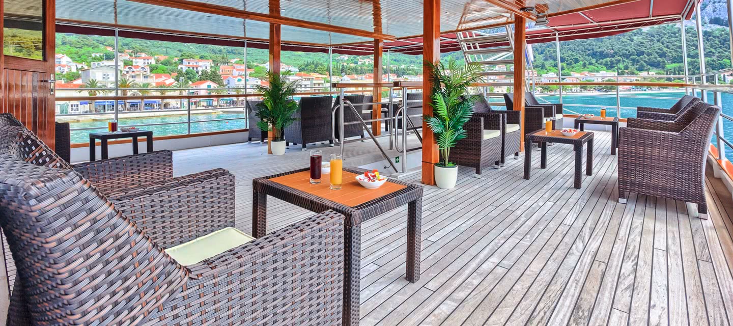 Privater Charter Harmonia Möchten Sie die Harmonia komplett für sich und Ihre Freunde und Familie oder für Ihren Firmen- oder Vereinsausflug chartern? Dies ist in Dalmatien ab dem Hafen von Dubrovnik bzw. Split zu folgenden Konditionen möglich: Abfahrtstermine Charterpreis pro Woche Saison 2021: 28.03. / 04.04. / 11.04. / 18.04. / 24.10. 23.750 Euro Saison 2021: 28.03. / 04.04. / 11.04. / 18.04. / 24.10. 25.500 Euro Saison 2021: 28.03. / 04.04. / 11.04. / 18.04. / 24.10. 28.140 Euro Saison 2021: 28.03. / 04.04. / 11.04. / 18.04. / 24.10. 30.750 Euro Verpflegungsoption (Preis pro Person / Woche) Zuschlag Halbpension (Frühstück + 1 warme Mahlzeit pro Tag) 290 Euro Zuschlag Halbpension Plus (4 x Vollpension und 3 x Halbpension) 330 Euro Privater Charter Anfragen Im Charterpreis enthalten Bordmanager/Reiseleitung Crew Bettwäsche, Handtücher mit 1 x Wechsel Endreinigung Hafengebühren Diesel für 28 h Fahrt pro Woche Nicht im Charterpreis enthalten Kurtaxe Wasserpauschale Getränke an Bord nach Strichliste (zahlbar vor Ort) Mieträder Mietradversicherung Eintritte in Nationalparks und Sehenswürdigkeiten Unterschiedliche Programmpakete (je nach Reise) Flughafentransfers Trinkgelder für Crew & Reiseleitung