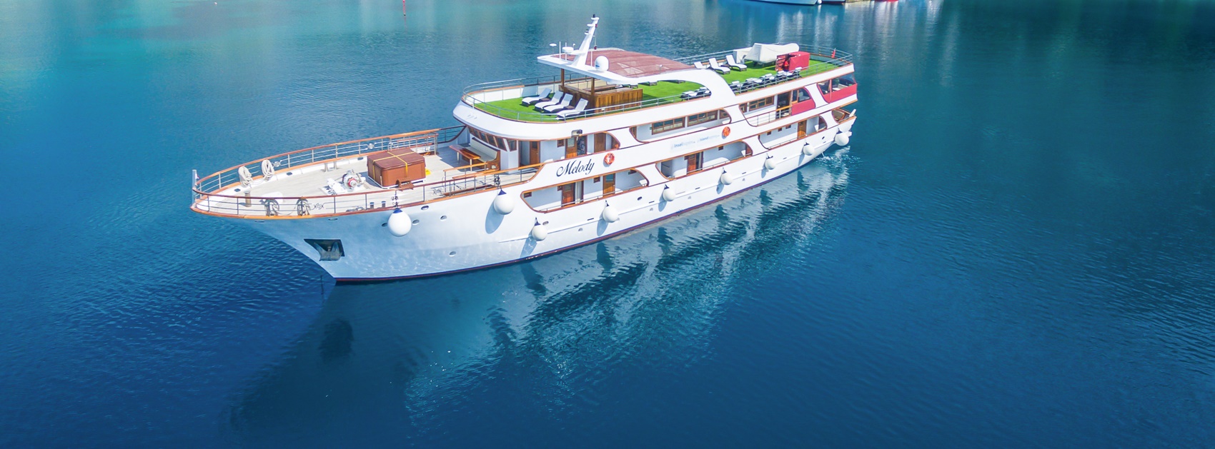 Die Melody ist ein schwimmendes Luxushotel und Verwöhn-Schiff, mit dem Sie die schönsten Häfen Kroatiens aus erster Reihe erleben können! Mit ihrer exquisiten Ausstattung bietet die formschöne Motoryacht eine behagliche Atmosphäre und größtmöglichen Komfort.