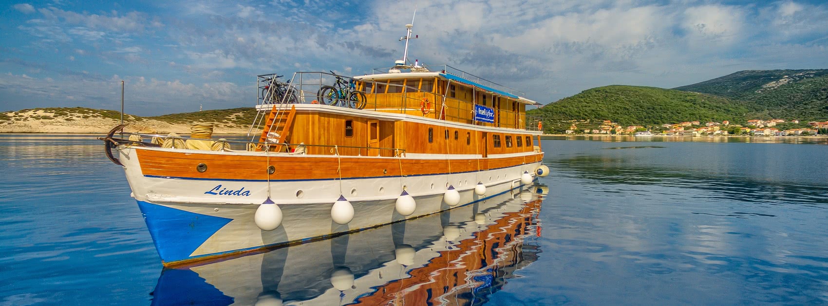 Privater Charter Linda Möchten Sie die Linda komplett für sich und Ihre Freunde und Familie oder für Ihren Firmen- oder Vereinsausflug chartern? Dies ist in der Kvarner Bucht in Kroatien ab dem Hafen von Omišalj auf der Insel Krk zu folgenden Konditionen möglich: Abfahrtstermine Charterpreis pro Woche Saison 2022: 25.03. / 01.04. / 08.04. / 15.04. / 21.10. 12.750 Euro Saison 2022: 22.04. / 29.04. / 06.05. / 07.10. / 14.10. 14.500 Euro Saison 2022: 13.05. / 20.05. / 27.05. / 03.06. / 10.06. / 17.06. / 24.06. / 01.07.* / 08.07.* / 15.07.* / 22.07.* / 29.07. / 05.08. / 13.08. / 30.09.(*Abfahrtstermine ab Pula) 16.140 Euro Saison 2022: 19.08. / 26.08. / 02.09. / 09.09. / 16.09. / 23.09. 18.750 Euro Verpflegungsoption (Preis pro Person / Woche) Zuschlag Halbpension (Frühstück + 1 warme Mahlzeit pro Tag) 240 Euro Zuschlag Halbpension Plus (4 x Vollpension und 3 x Halbpension) 290 Euro Privater Charter Anfragen Im Charterpreis enthalten Bordmanager/Reiseleitung Crew Bettwäsche, Handtücher mit 1 x Wechsel Endreinigung Hafengebühren Diesel für 28 h Fahrt pro Woche Nicht im Charterpreis enthalten Kurtaxe Wasserpauschale Getränke an Bord nach Strichliste (zahlbar vor Ort) Mieträder Mietradversicherung Eintritte in Nationalparks und Sehenswürdigkeiten Unterschiedliche Programmpakete (je nach Reise) Flughafentransfers Trinkgelder für Crew & Reiseleitung